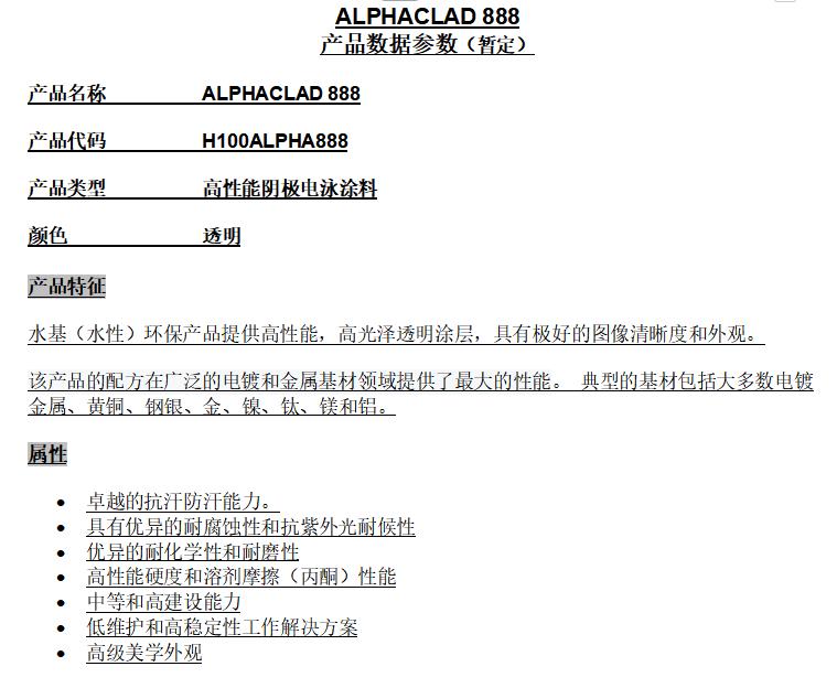 • 電泳漆ALPHACLAD888在線咨詢